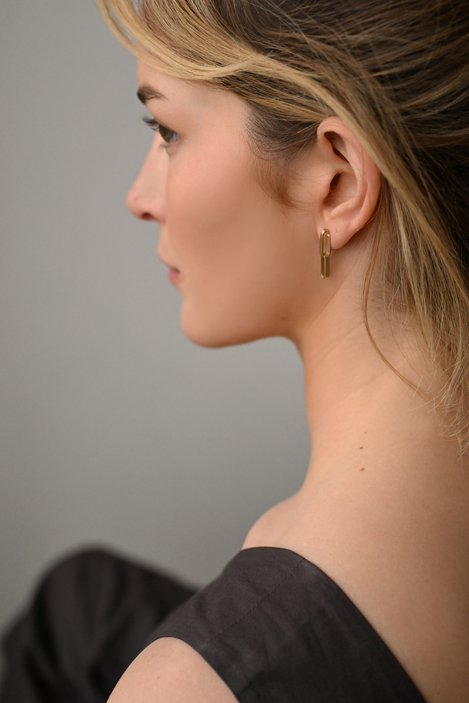 Available in 14K Gold, Sterling Silver, and Brass with 14K gold filled chain and sterling silver posts