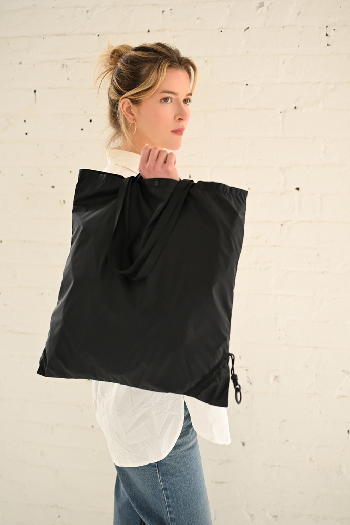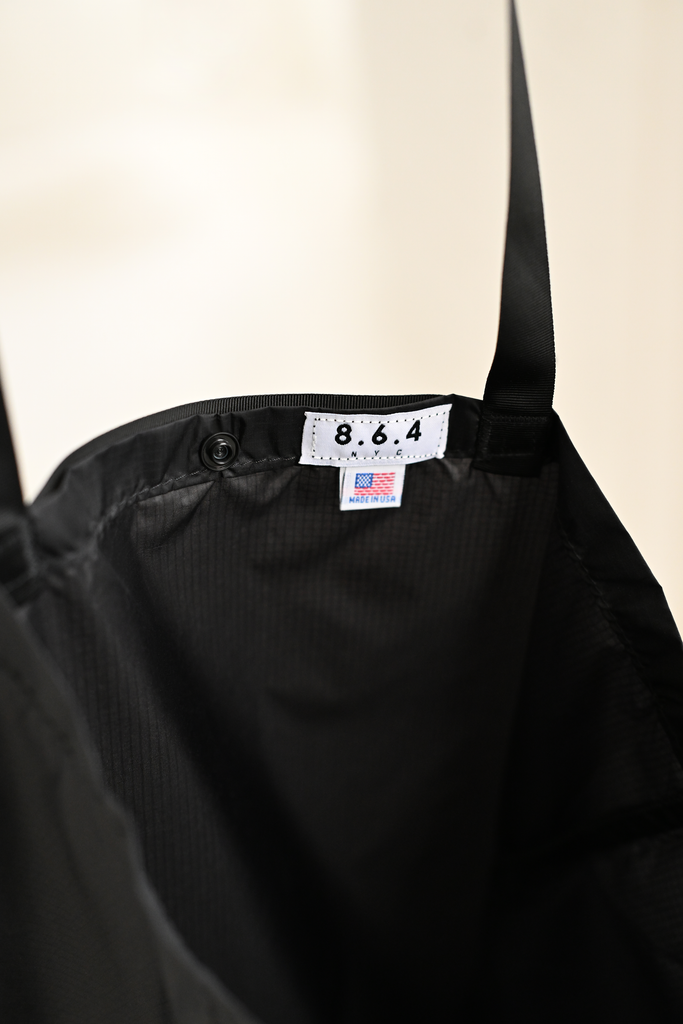 - Nylon handles and shoulder straps, snap-button closure, unlined interior