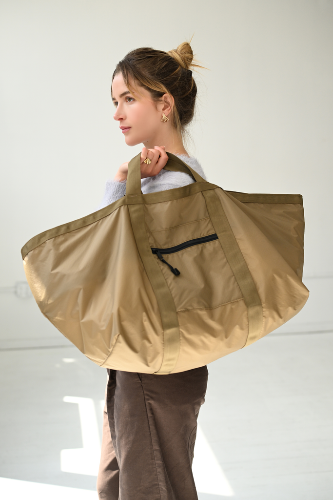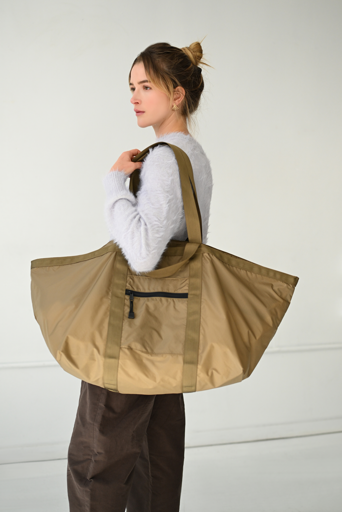 Zipper closure, one interior zipper pocket, one exterior zipper pocket