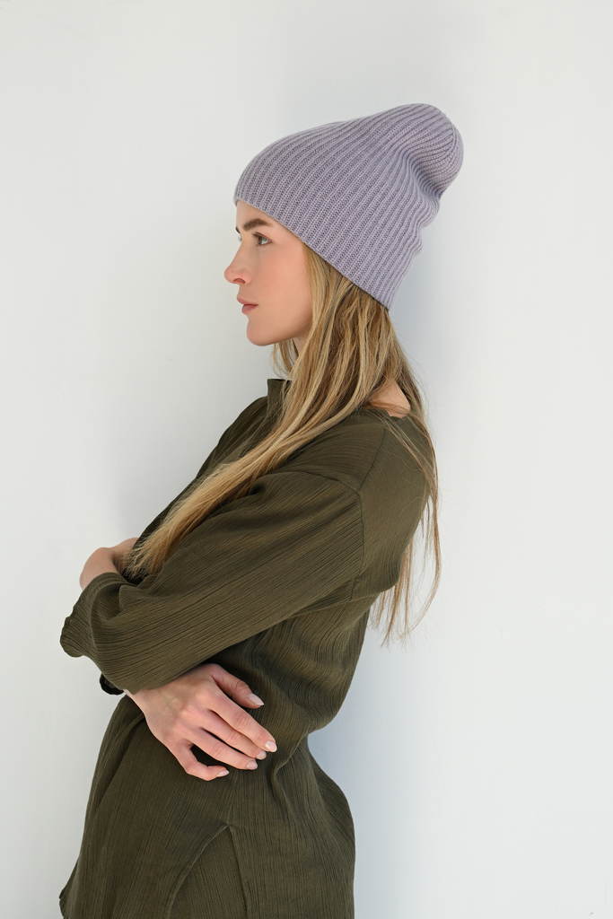 - 100% Cashmere ribbed knit beanie